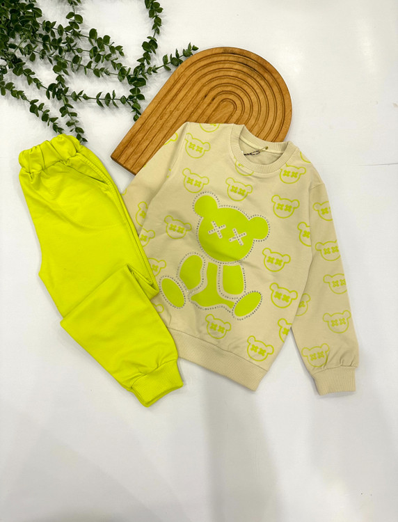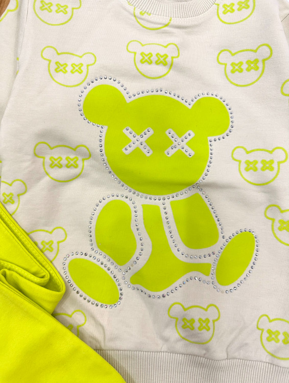ست بلوز شلوار دخترانه طرح خرس نگین دوزی😍