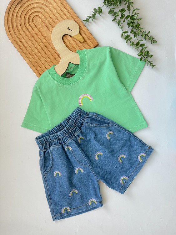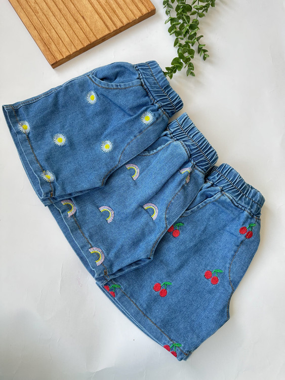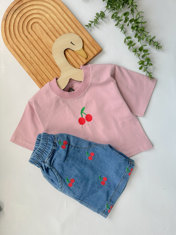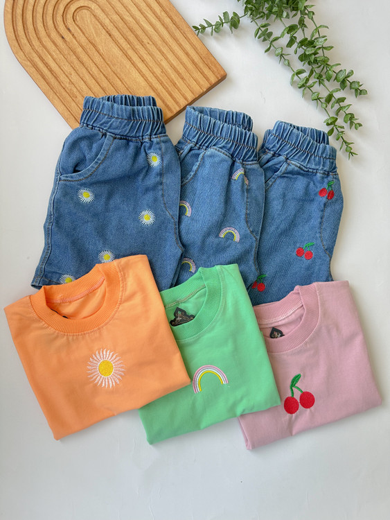 ست کراپ و شرتک جین تمام گلدوزی