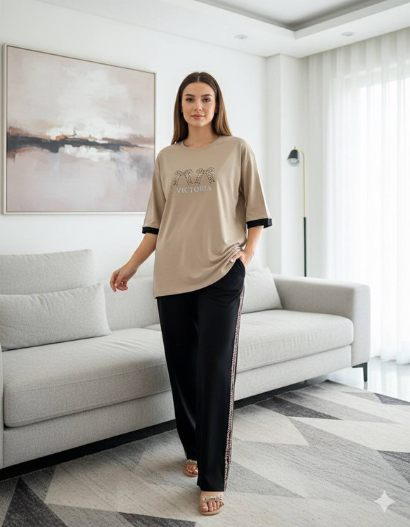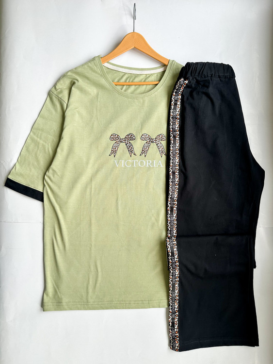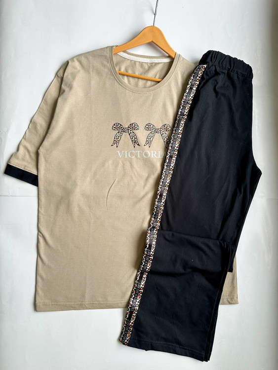 ست تیشرت لش و شلوار بگ پاپیون پلنگی