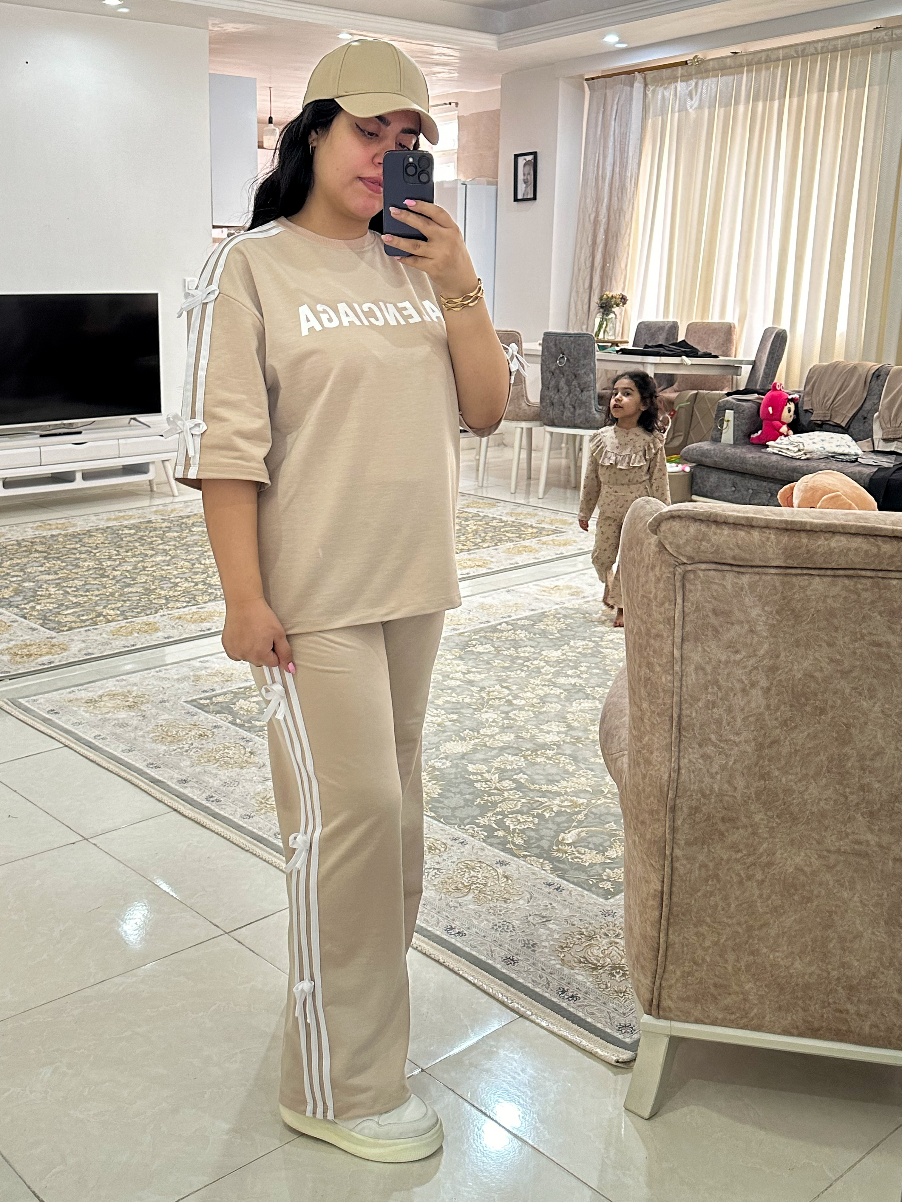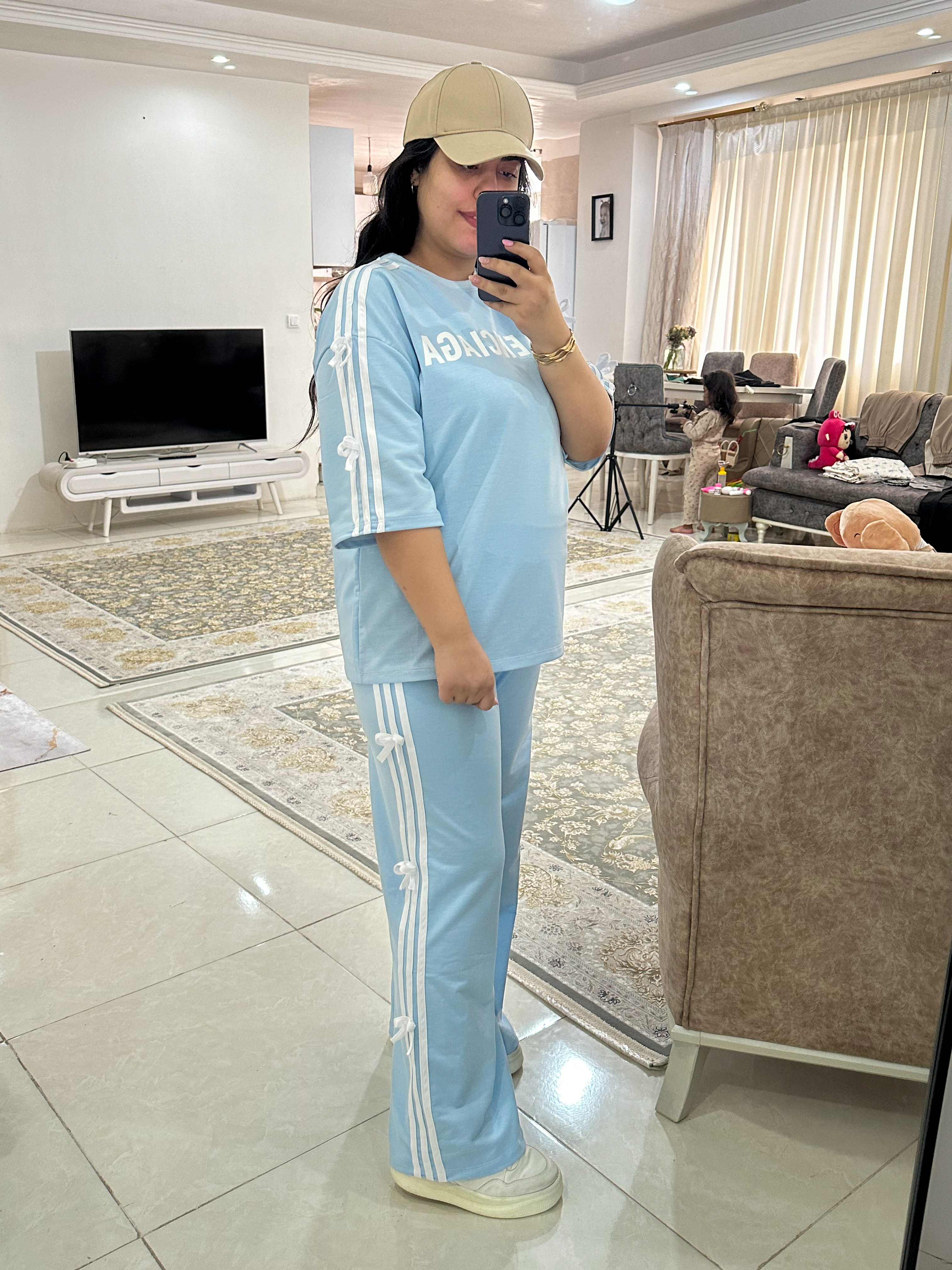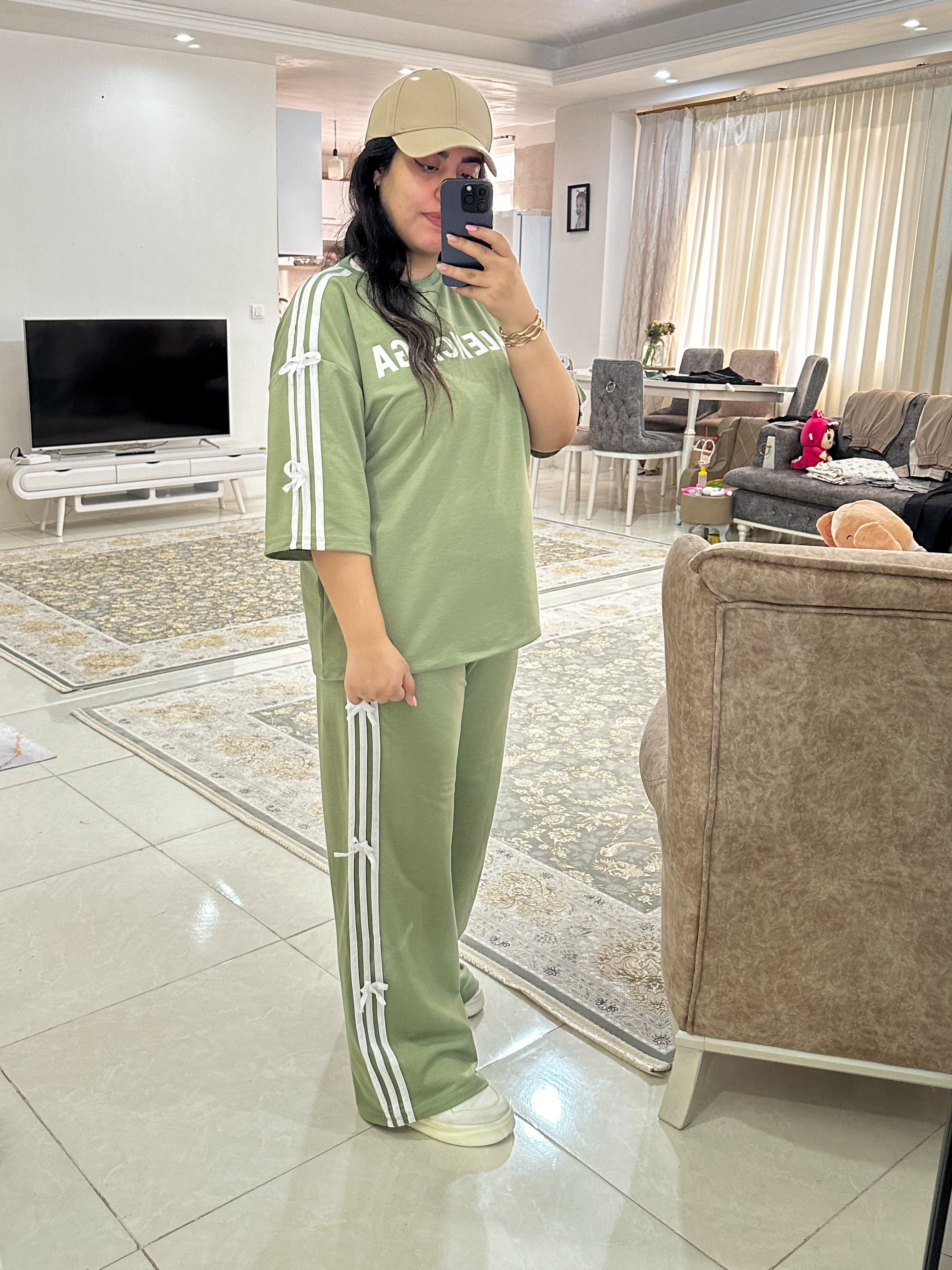 عصای دست مسافرتا و مهمونیات😍 ست لانگ شیک و راحت و بسیاار با کیفیت😍 پارچه سوپر پنبه گلکسی درجه یک فری سایز از سایز ۳۸ تا۴۶ فد تیشرت۷۴ قد استین از یقه ۴۷ دور سینه ۱۲۸ قد شلوار۱۱۰ دور ران۷۰ دور باسن۱۲۶