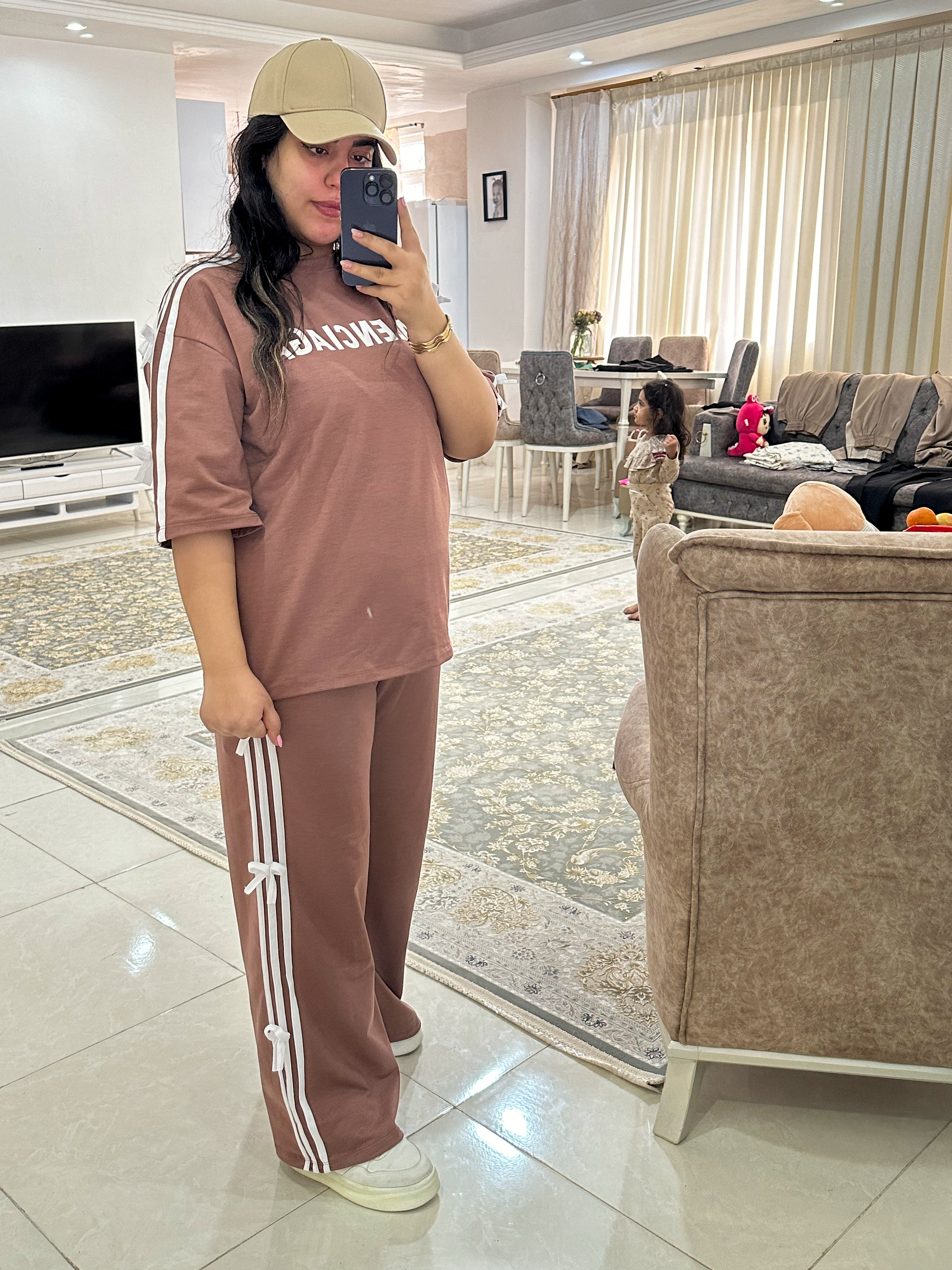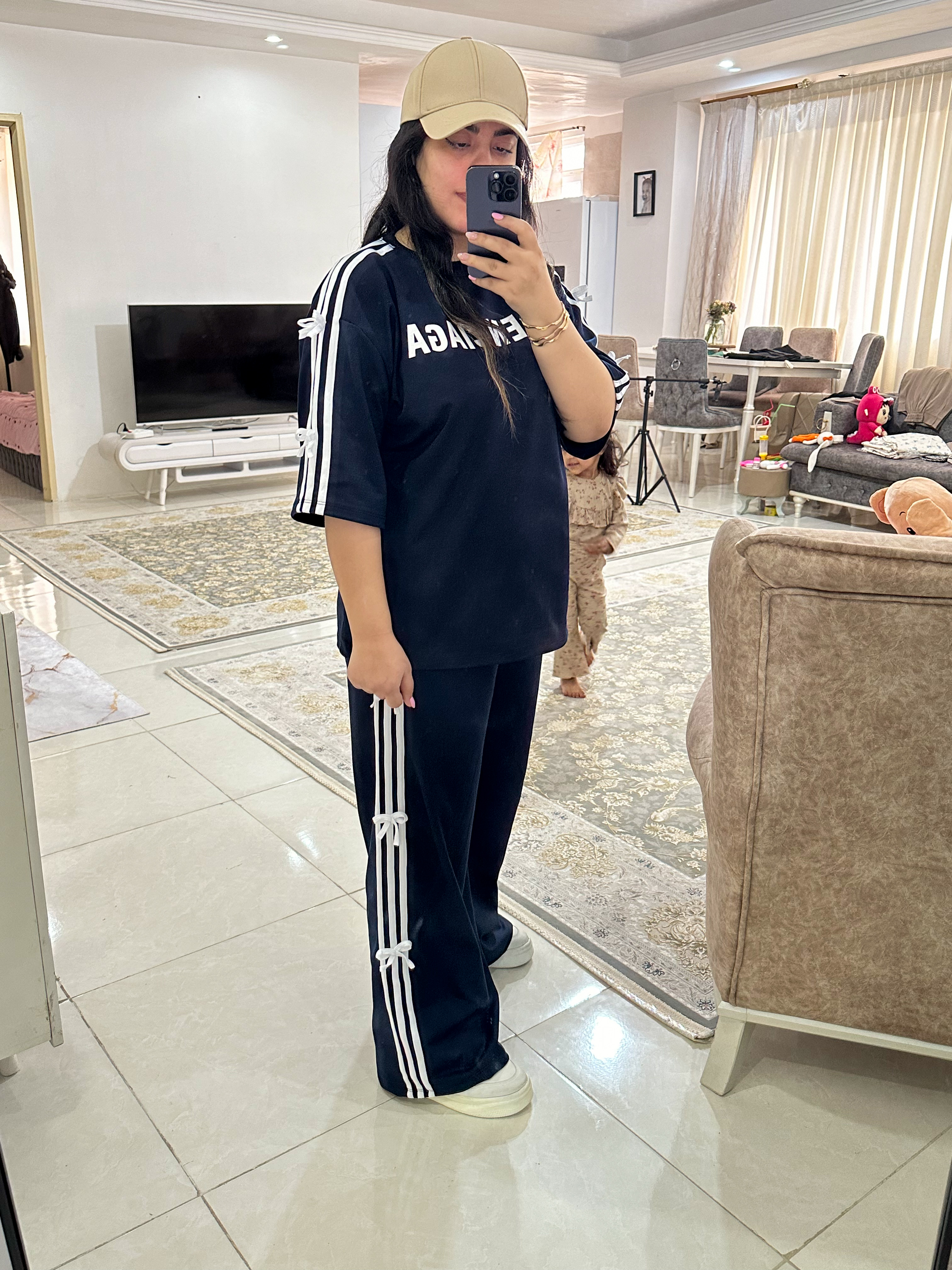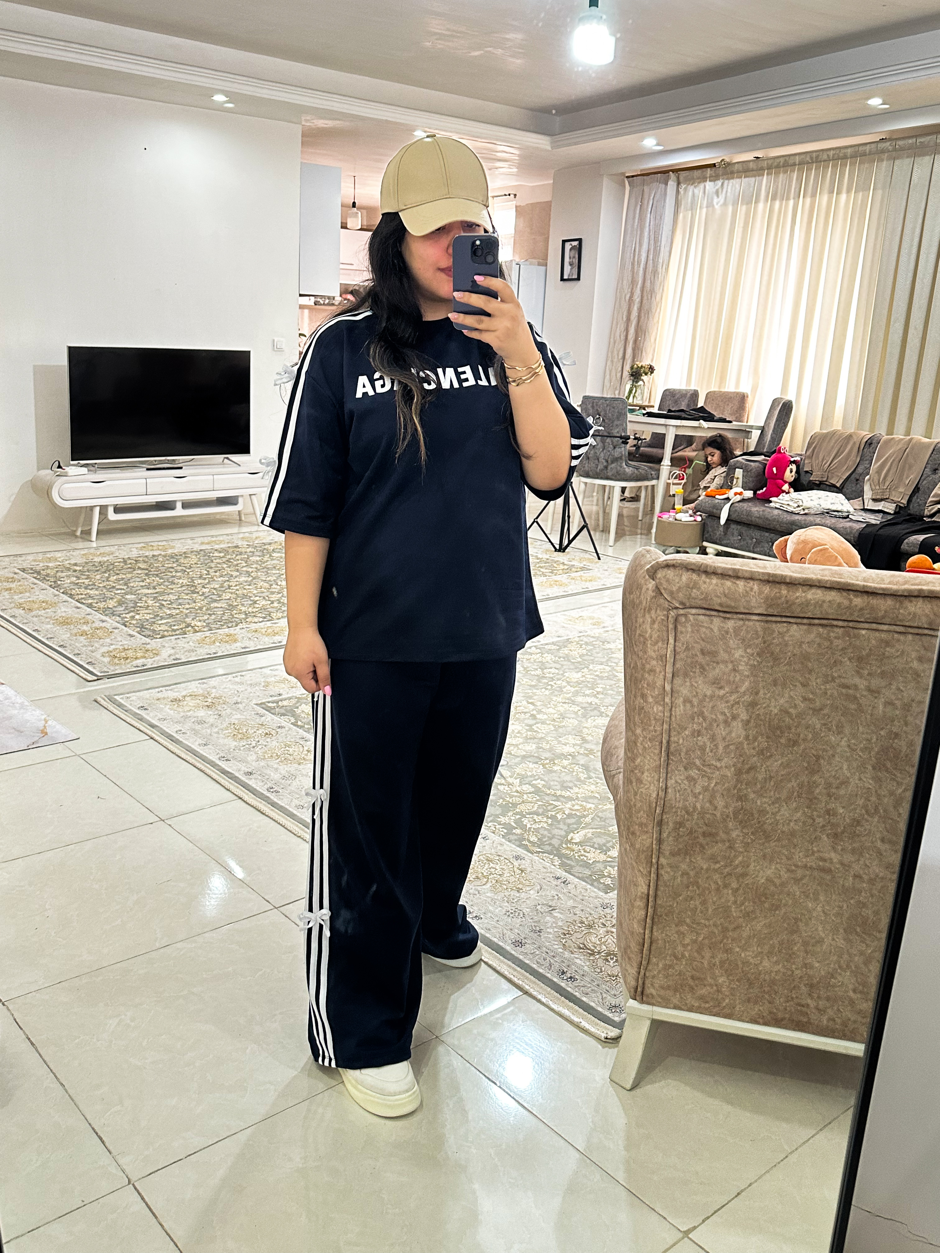 عصای دست مسافرتا و مهمونیات😍 ست لانگ شیک و راحت و بسیاار با کیفیت😍 پارچه سوپر پنبه گلکسی درجه یک فری سایز از سایز ۳۸ تا۴۶ فد تیشرت۷۴ قد استین از یقه ۴۷ دور سینه ۱۲۸ قد شلوار۱۱۰ دور ران۷۰ دور باسن۱۲۶