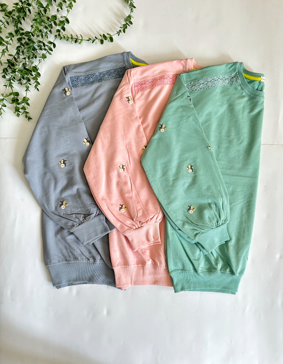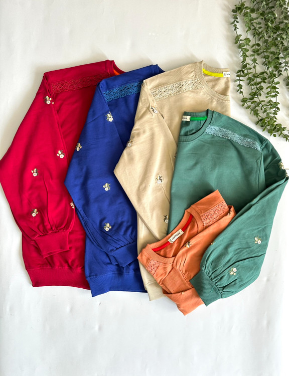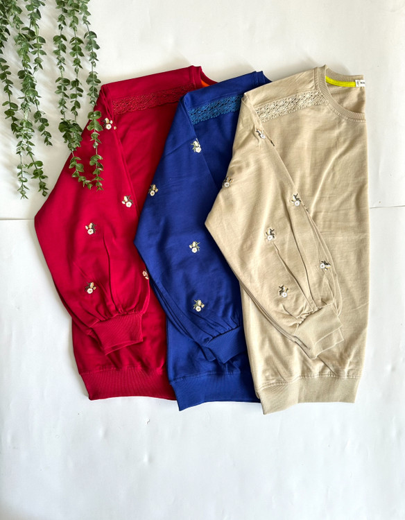 بلوز استین گلدوزی بیگ سایز سوپرپنبه