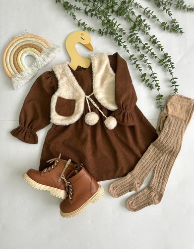 پیراهن مخمل کبریتی فرشته همراه با جلیقهناموجود